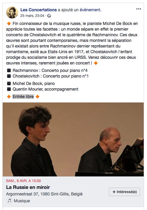 Avril 2019 => Calendrier d'événements à caractère culturel russe.
