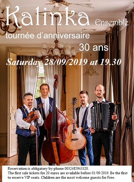 Réservation obligatoire par téléphone : 0485 94 33 20 The first sale tickets for 20 €are available before 01/09/2019. Be the firstto reserve VIP seats. Children are the most welcome guests for free.