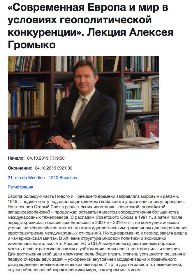 Сайт/Site : https://www.ruscentre.be/events/sovremennaja-evropa-i-mir-v-uslovijah-geopoliticheskoi-konkurencii-lekcija-alekseja-gromyko.html