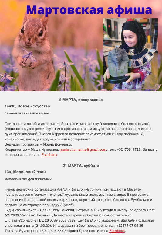 Запись в группу обязательна : azbuka.brussels at gmail.com Стоимость участия : 10 евро Оплата: BE61 0689 0510 6017 Azbuka
