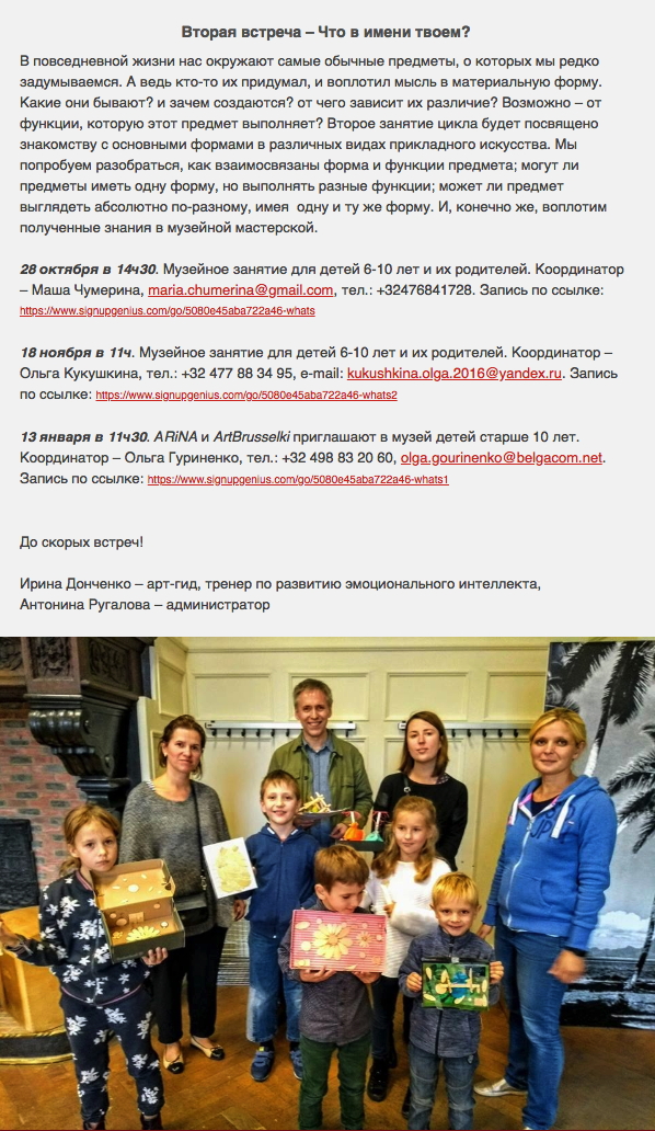 ARiNA и ArtBrusselki приглашают в музей на первое занятие цикла « Увлекательный мир предметов ». Belgium with kids — Useful art — Tour for children of 10 years and older. Olga Gourinenko,