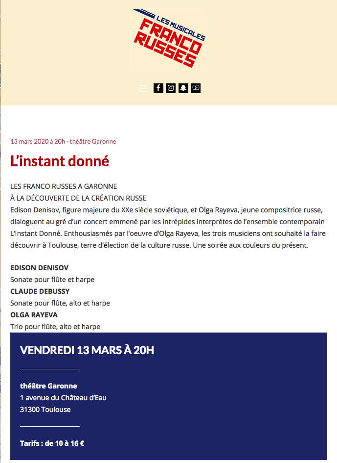 Сайт/Site : http://www.lesmusicalesfrancorusses.fr/https://www.francemusique.fr/evenements/2e-edition-des-musicales-franco-russes-de-toulouse-du-10-mars-au-3-avril-2020