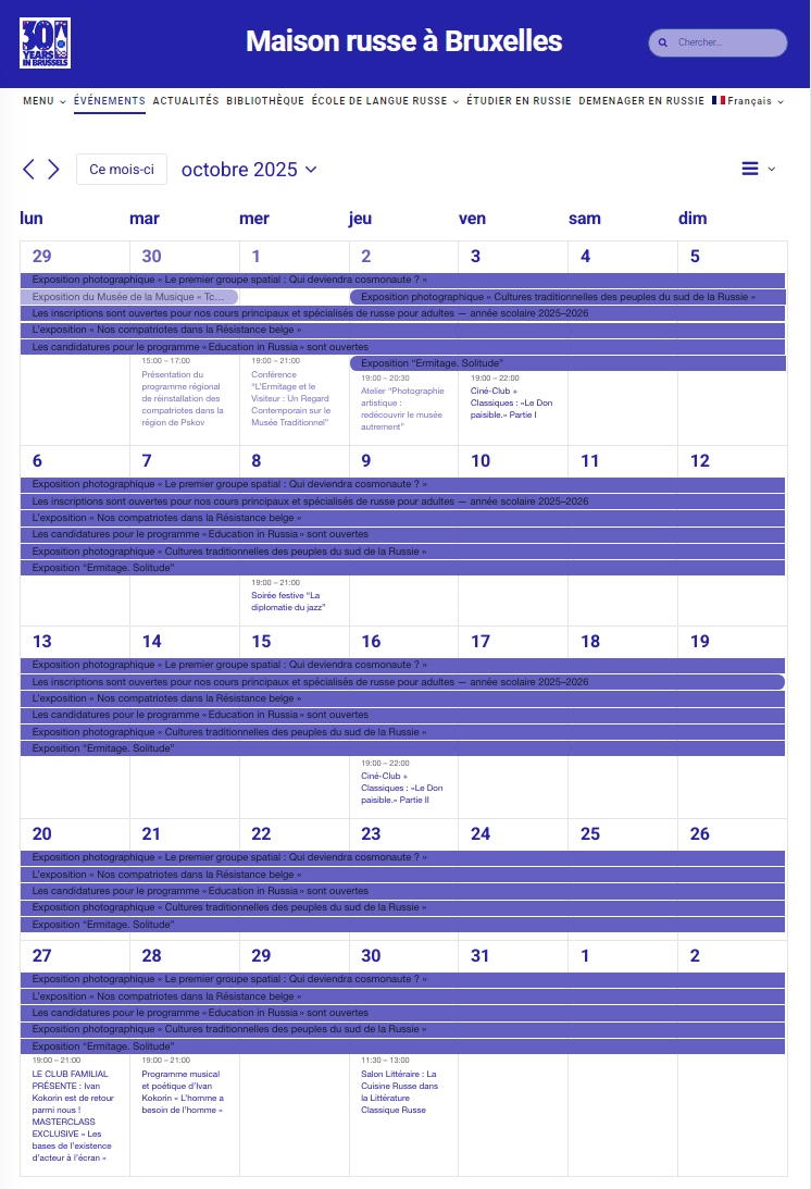 Maison russe Bruxelles-Europe. Calendrier des événements culturels du 1er au 15 octobre 2025.