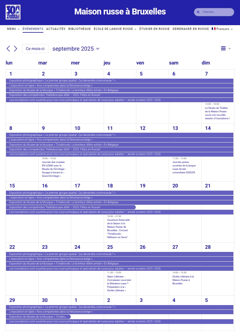 Maison russe Bruxelles-Europe. Calendrier des événements culturels du mois de septembre 2025. |