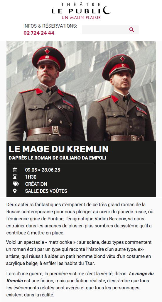 Сайт/Site : https://www.theatrelepublic.be/le-mage-du-kremlin